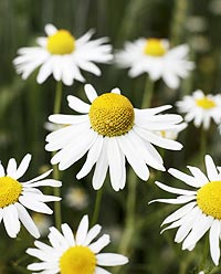 Die echte Kamille, ein Korbblütler, ursprünglich in Süd- und Osteuropa heimisch, ist heute in ganz Europa, in Nordamerika, in Australien und Vorderasien verbreitet. Sie wächst einjährig, wird 15 bis 50 cm hoch und blüht von Mai bis September. Sie gedeiht auf lehmigen Böden bis zu 1300 Höhenmetern. Verwendet wurden die Kamillenblüten schon seit altersher in der Volksheilkunde. Der Kamillentee wird als schlafförderndes und beruhigendes Getränk geschätzt. Desweiteren wirkt Kamille krampflösend, heilungsfördernd und antibakteriell. Sie wird bei Blähungen, Magen- und Darmentzündungen, Magenkrämpfen und Menstruationsbeschwerden eingesetzt. Auch bei Haut und Schleimhauterkrankungen hat die Kamille einen entzündungshemmenden Einfluss.
